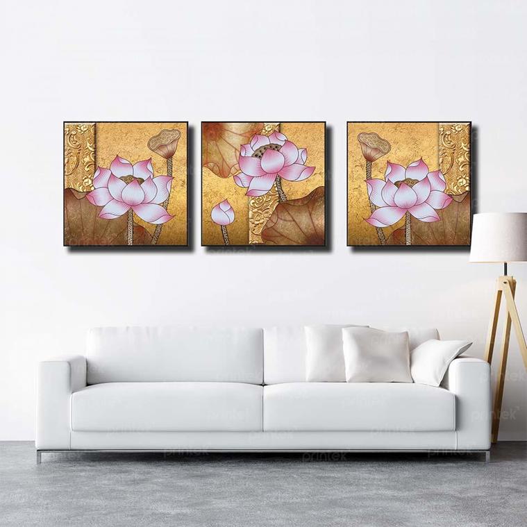 Trong các bố cục `tranh treo phòng khách`, bộ tranh 3 tấm vẫn là kiểu được chọn nhiều vì dễ cân đối với kích thước sofa và tạo bố cục rõ ràng cho mảng tường lớn.