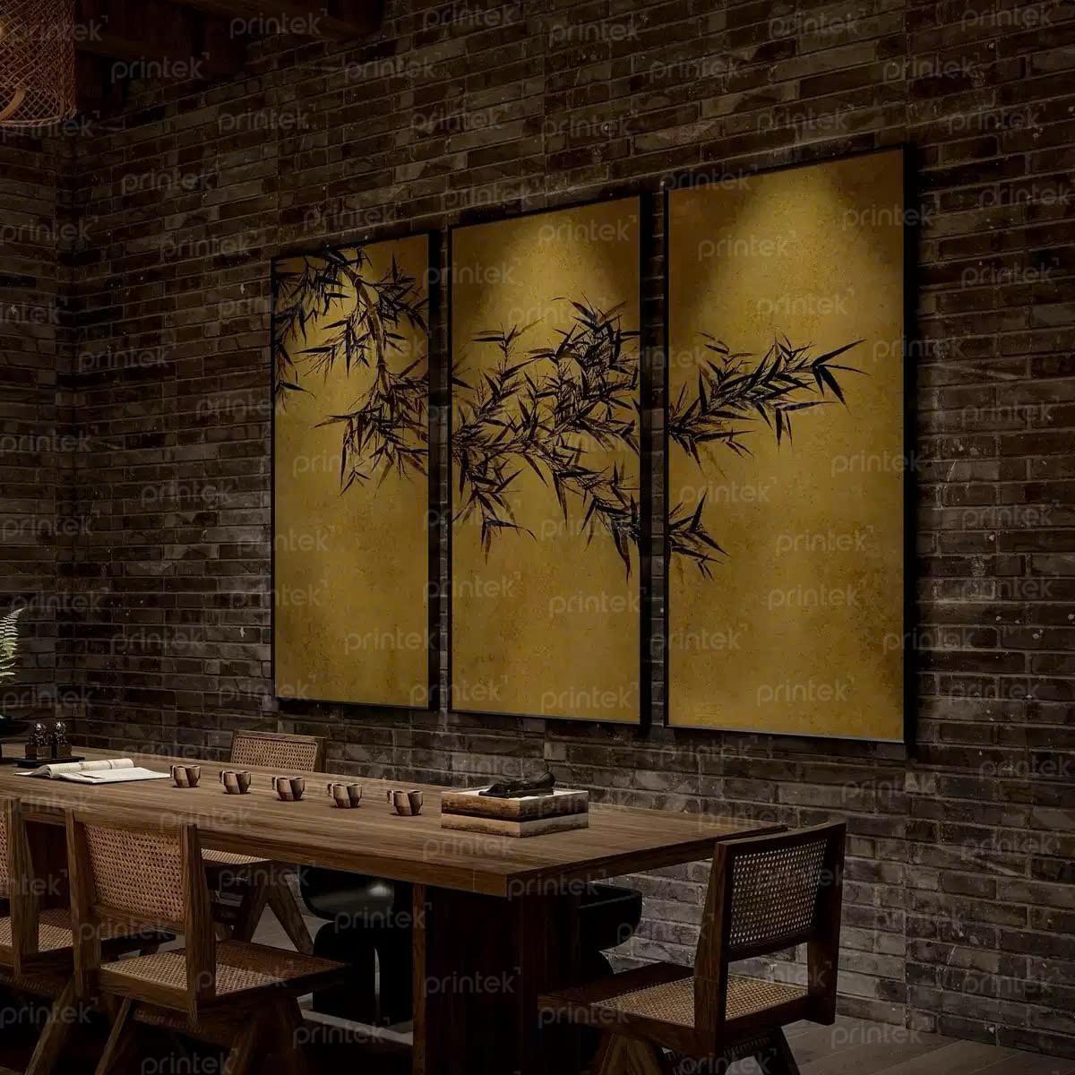 Bộ 3 tranh cành trúc phong cách thủy mặc là lựa chọn hoàn hảo cho những ai yêu thích vẻ đẹp tĩnh lặng, tinh tế và đậm chất Á Đông. Hình ảnh trúc – biểu tượng của chính trực, may mắn và sự kiên cường – được thể hiện bằng nét vẽ mềm mại, tối giản theo phong cách thủy mặc, tạo nên cảm giác thư thái và thanh sạch cho không gian sống.