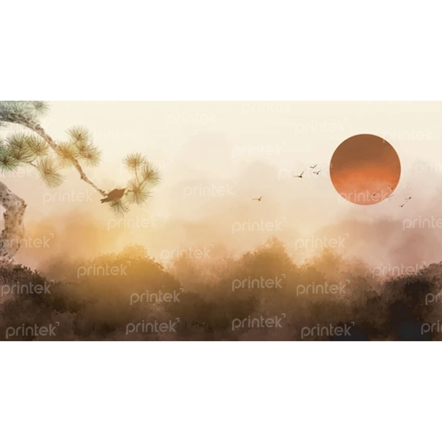 Tranh thuỷ mặc mặt trời đỏ - ST4488