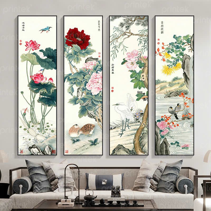 Một mẫu tranh tứ quý thủy mặc do Printek sản xuất