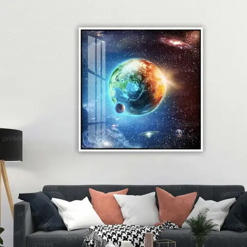 Bức tranh là hình ảnh Trái Đất xanh biếc, lơ lửng giữa không gian bao la, được thể hiện bằng công nghệ in 3D hiện đại. Hiệu ứng 3D sống động tạo cảm giác như bạn đang nhìn ngắm Trái Đất từ một phi thuyền ngoài vũ trụ.